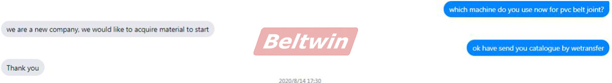 We sent our PVC PU Joint Machine and Rubber Belt Vulcanizer Product Catalogue.