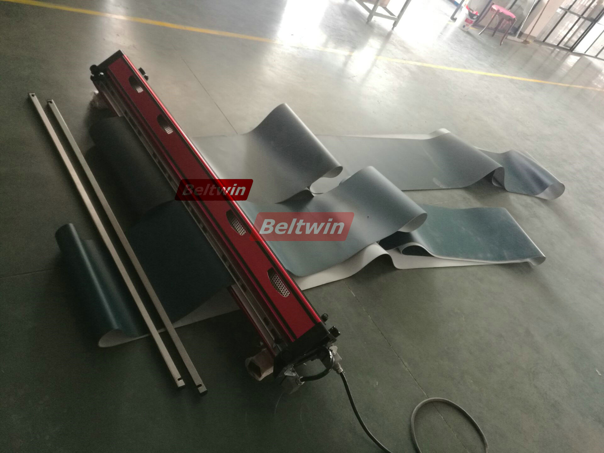 2. How to use a hot air gun to weld the V-rail on the conveyor belt in the longitudinal direction. Select a sander after sanding the fabric side of the belt before gluing the V-guides to the back of the conveyor belt. New design, 1000mm roller, 300mm wider than old design.