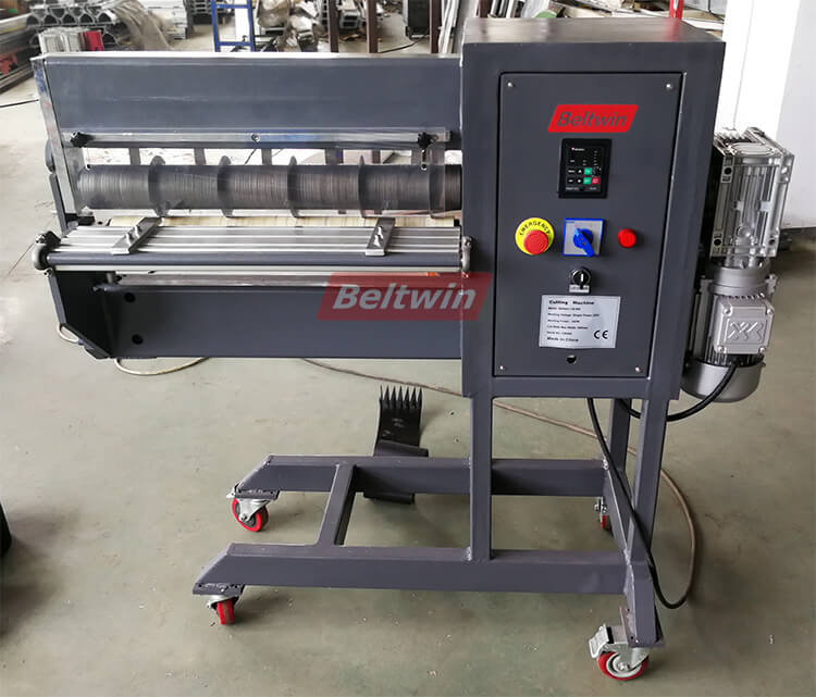 The slitter is designed for easy longitudinal cutting of conveyor belts under 600/900/1200mm, can used for PVC/PU belts.