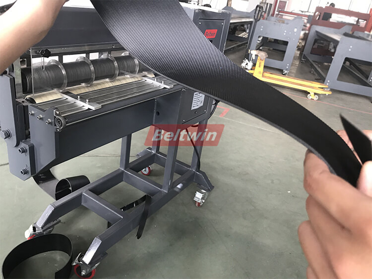 With several with knives mounted on movable toolbar, can cut the belt into several small belts.