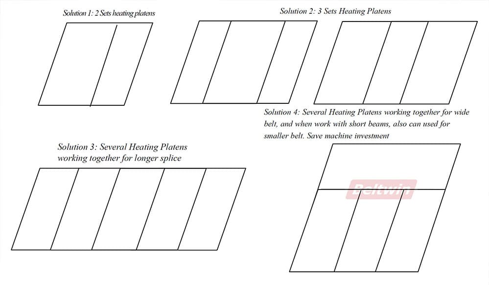 - Can offer total solution, one vulcanizing press work with additional beams can used for several belt width.