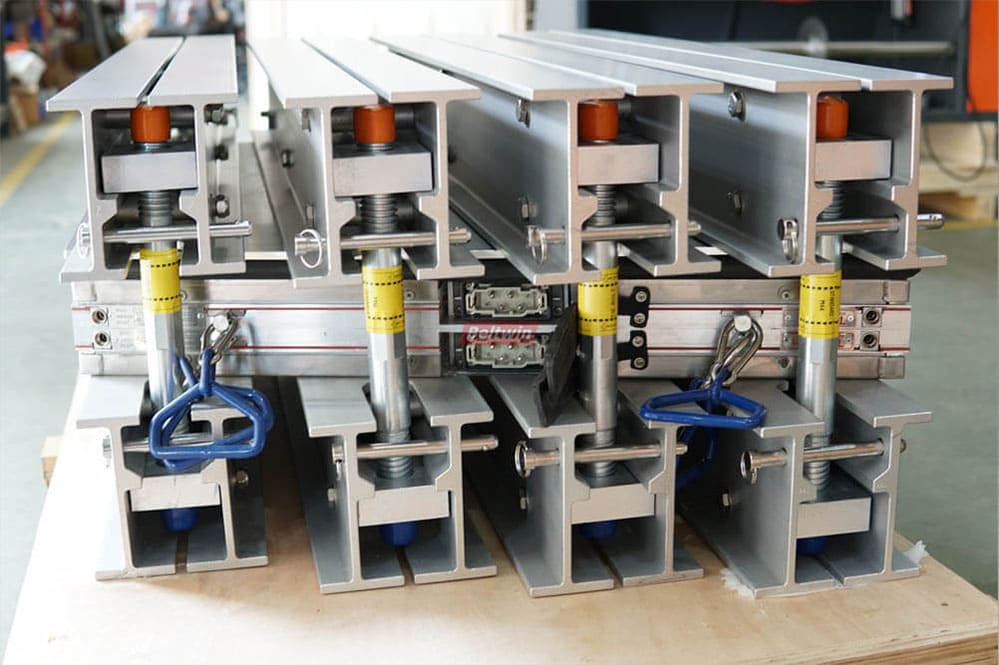 - Standard beams use grade 7005 aluminum material, and beams for over 1200mm belt-width vulcanizer use grade 6082 aluminum material. Almex style E type cross beam is optional.