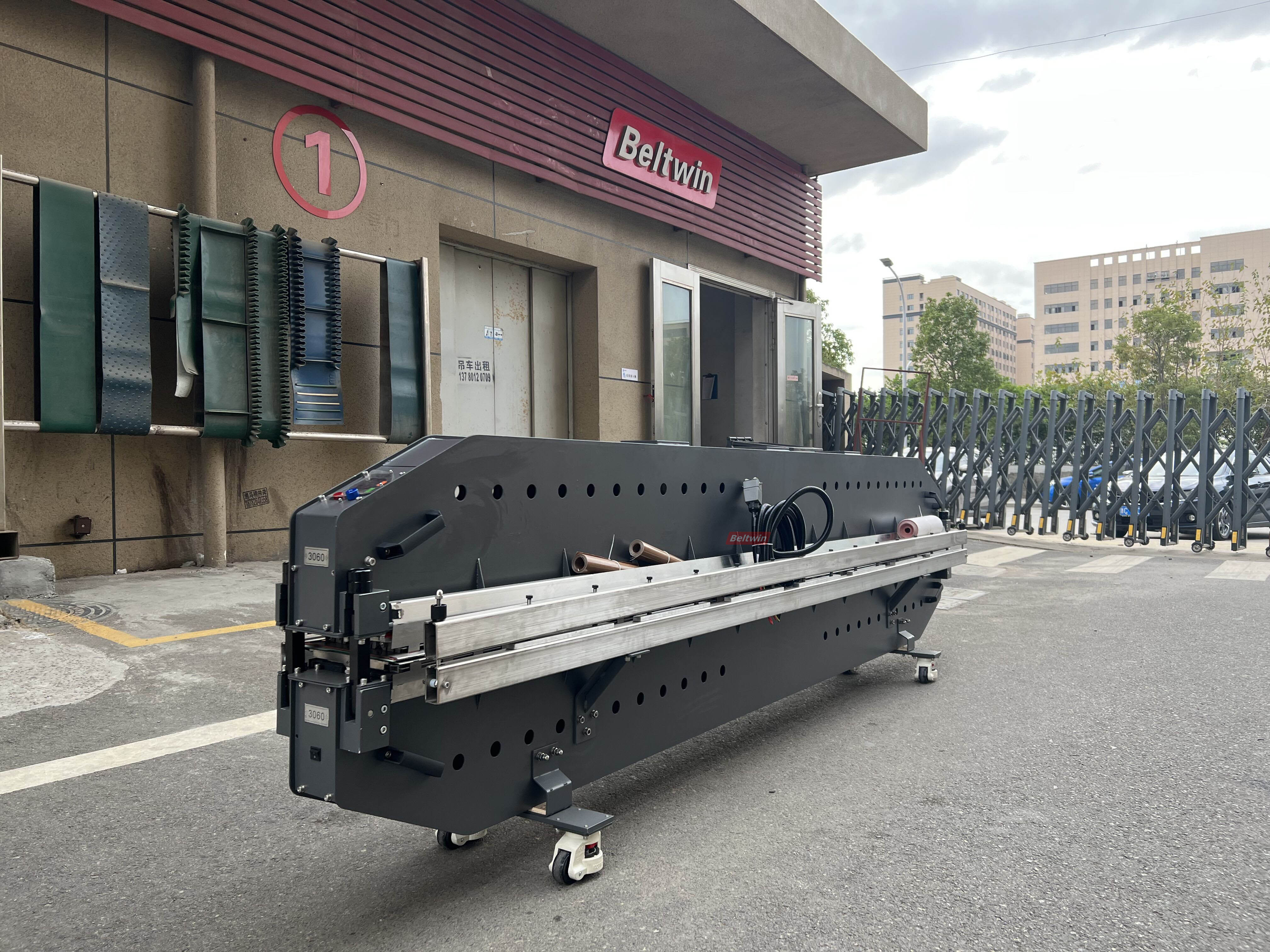 This portable air cooling press can splice belts up to 3300mm in width. With all components fully integrated, it requires no assembly and can be used directly on conveyor belts. It features independent temperature control for the upper and lower parts, and a built-in pressure bag for air pressure adjustment.
